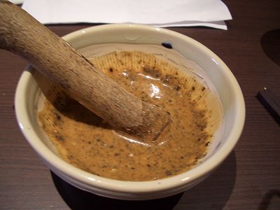 磨好後..倒入豬排醬.芝麻醬(3:1)