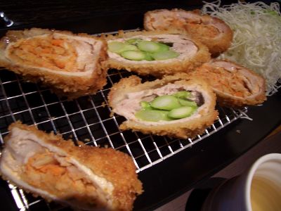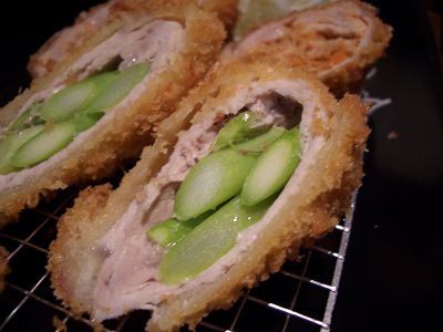 青脆蘆筍豬排:精選最嫩且油脂含量少的里肌肉,包裹主廚鮮選蘆筍,搭配特調椒鹽粉,味道獨特爽口。